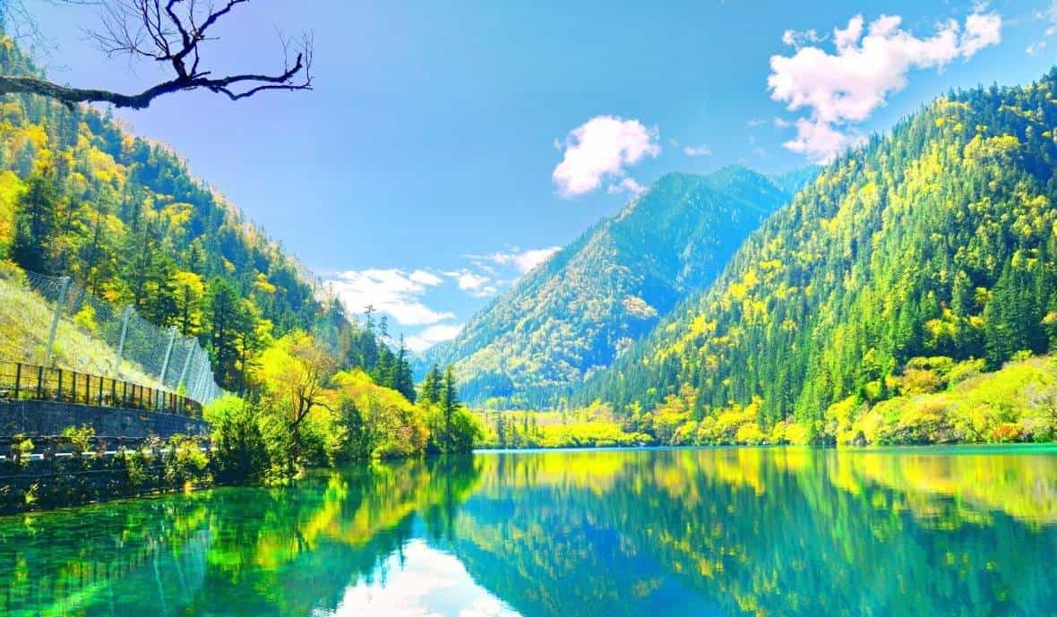 D3、全天游【九寨溝】,乘景區觀光車遊九寨溝三條溝。晚上有興趣可以欣賞九寨千古情晚會260元。 住:同上 早中晚