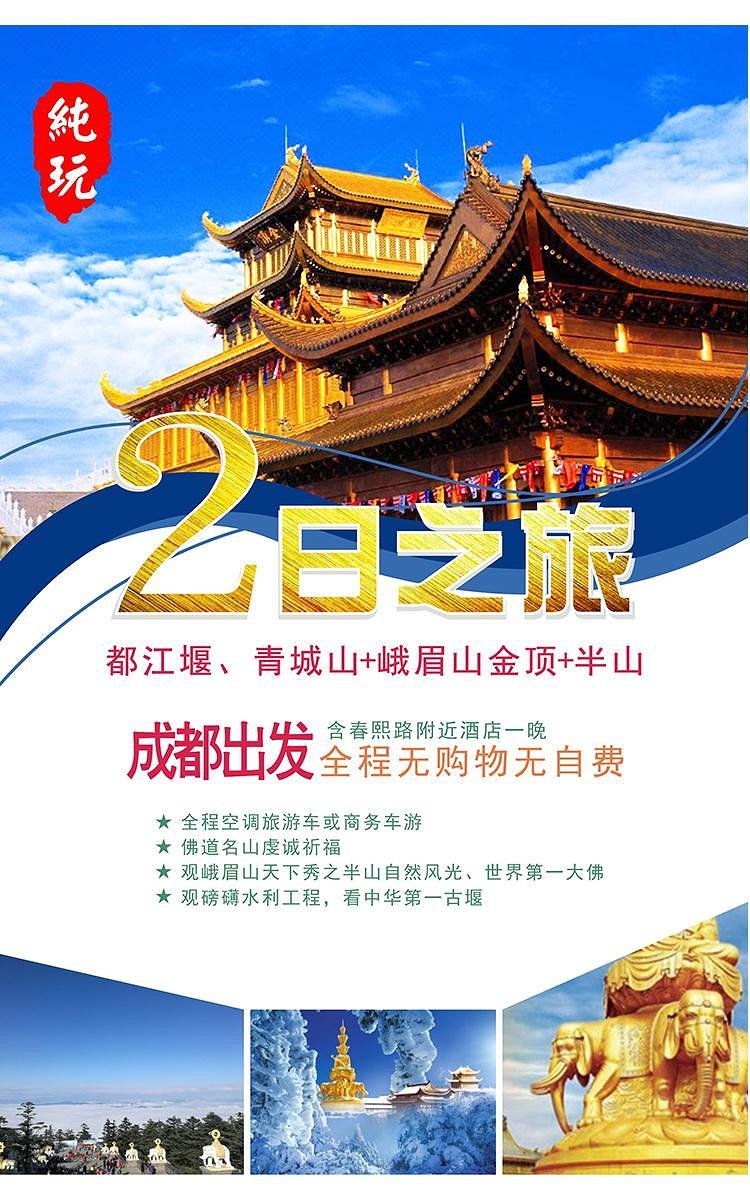 都江堰青城山、峨眉山(金顶+半山)纯玩2日游
